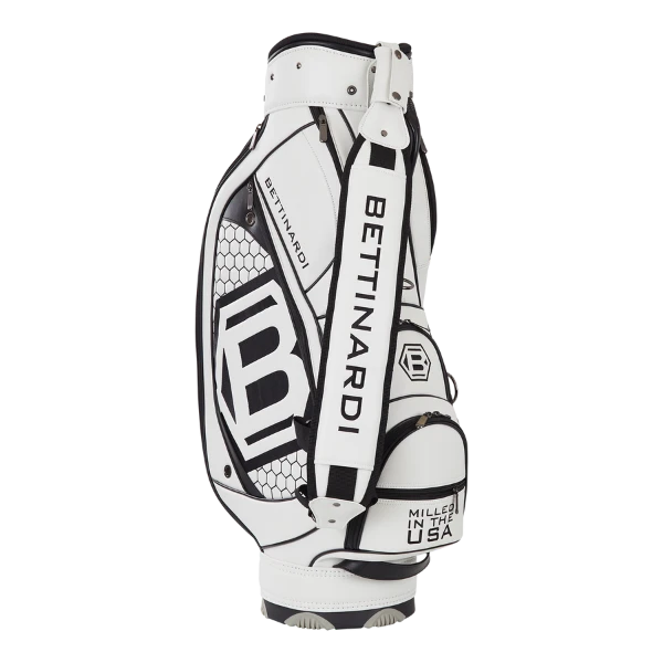 The super white staff bag features a beautiful honeycomb pattern throughout the panels and features a Hex B on the sides and at the top. This 6-way bag is adorned in a black and white colorway and features a combination of leather and carbon fiber elements throughout, including numerous zippered pockets, and a matching rain hood.
