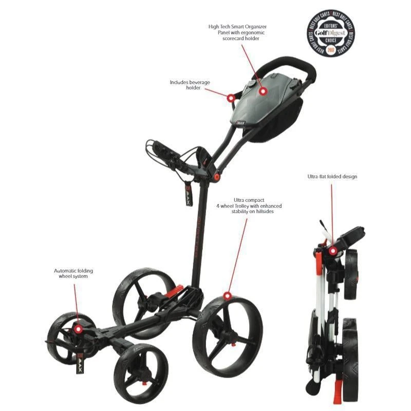 The Blade Quattro trolley not only fits the definition of the ultra-compact category, but actually creates the need for a new golf trolley category of its own. With the Blade Quattro, BIG MAX has succeeded in bringing to market the most spectacular trolley in terms of design and functionality.