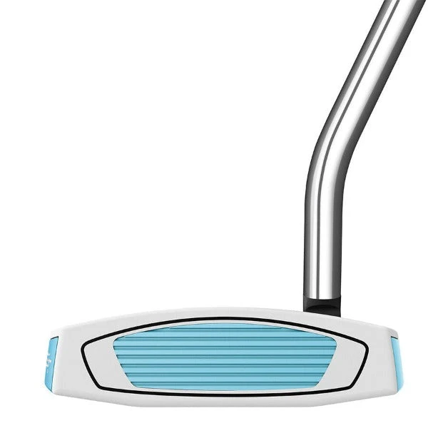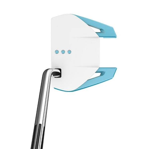 Spider GT Women’s putters have a lighter overall head weight and shorter length (only available in 33”) to fit a wide range of women golfers. The lightweight top plate complements the perimeter-weighted design and is crafted from white anodized aluminum. Contrasting light blue accents within the three-dot sightline aid alignment.